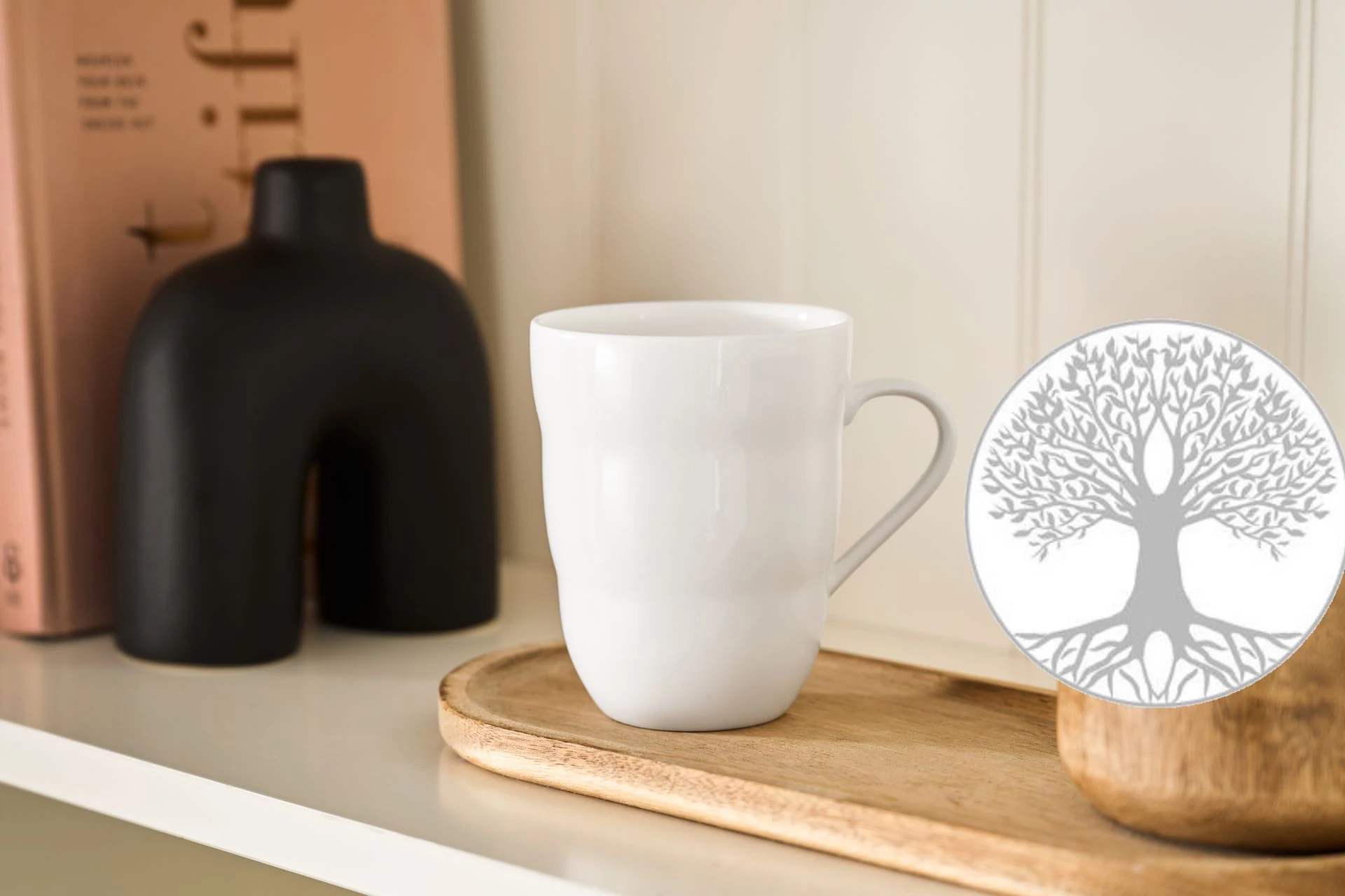 SHINNO TEÁS/KÁVÉS PORCELÁN BÖGRE ÉLETFA SZIMBÓLUMMAL |
